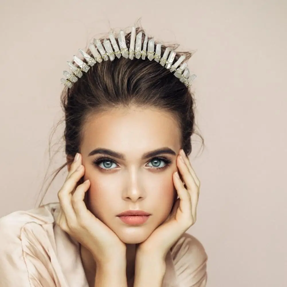 Raw Quartz Headband Wedding Tiara Hair Combs Ladies Hairband Crystal Comb Bridal Hair Accessories H